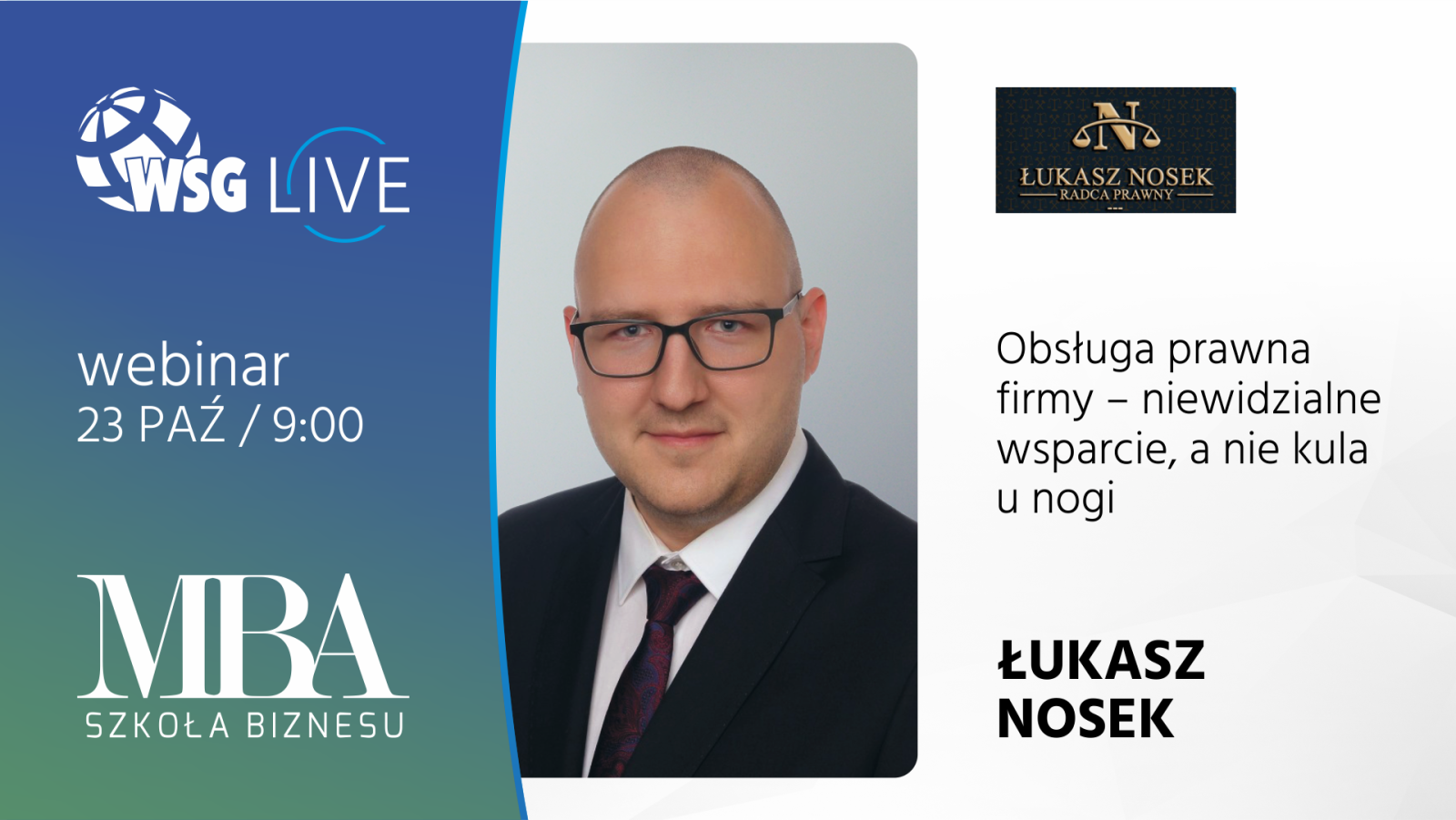 ŁUKASZ NOSEK - radca prawny z doświadczeniem w obsłudze spółek i instytucji publicznych, specjalizuje się w doradztwie dla zarządów i bieżącej obsłudze prawnej firm